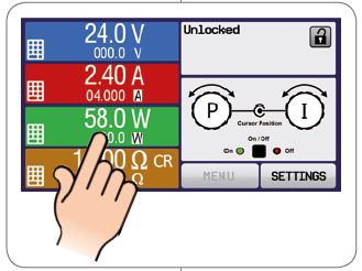 所有型號都支持四種調節模式:恒壓(CV),恒流(CC),恒功率(CP)與恒阻CR)。其控制電路核心是一個快速微處理器,具有這些功能:帶通用函數的真實函數發生器,如:矩形、三角形或階躍形。彩色顯示器與鍵盤,以及連個旋鈕,使用戶手操更靈活。