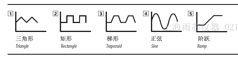 本系列所有型號都具有一可形成如下典型函數的真實函數發生器,并能將它們應用于輸出電壓或輸出 電流上。發生器可通過前板的觸摸屏設置,或經某一數字接口遠程配置。